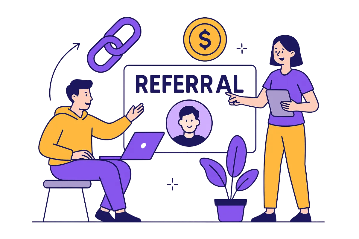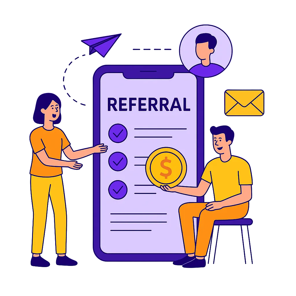 Share your unique referral link with friends, family, or businesses. A referral is valid when the new client (referee) registers using your link.